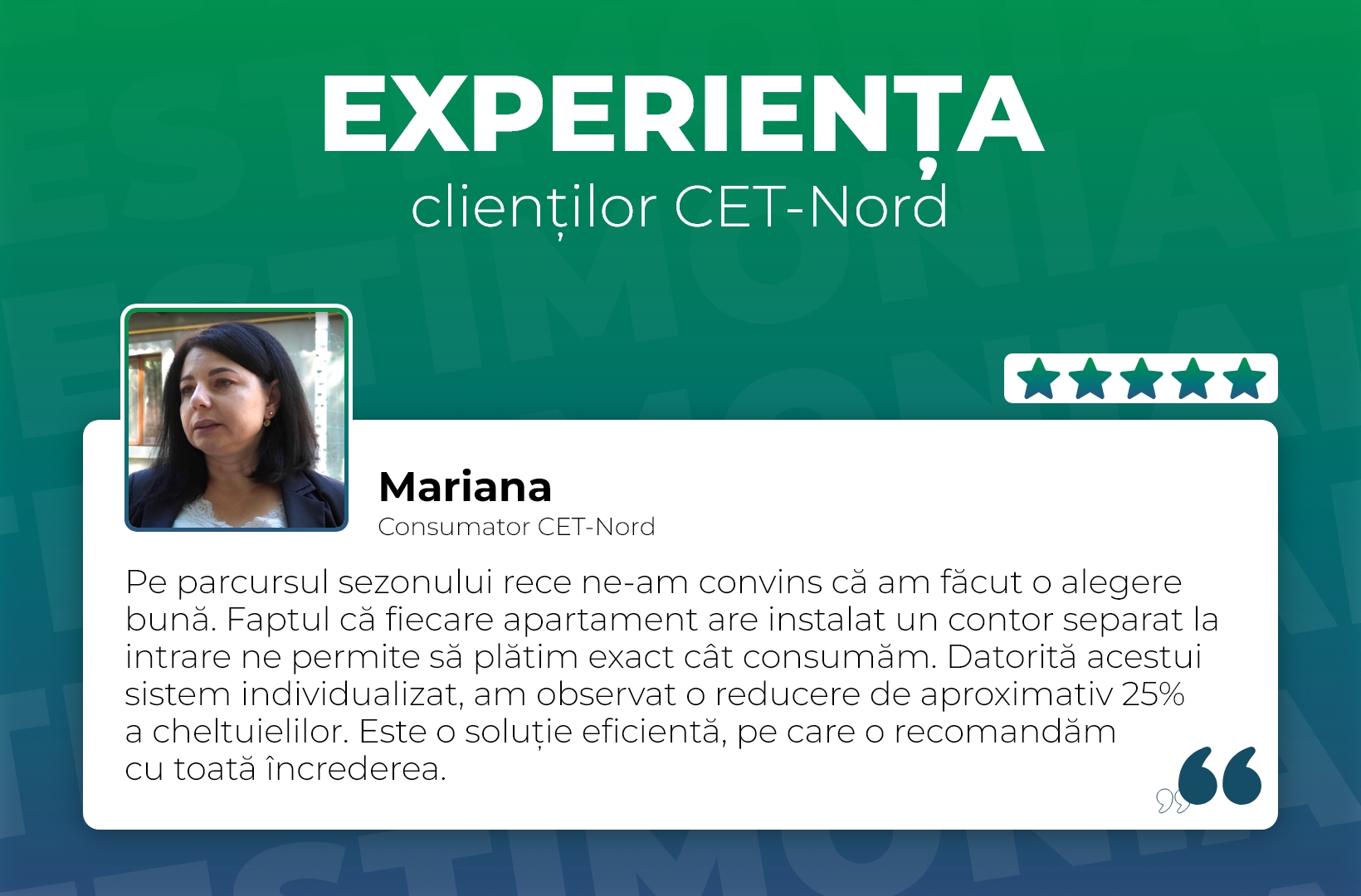 Modernizarea sistemului de termoficare produce rezultate reale, direct în locuințele consumatorilor noștri. Prin implementarea distribuției pe orizontală și a contoarelor individuale, oamenii nu doar simt mai mult confort, ci și controlează mai bine consumul de energie.