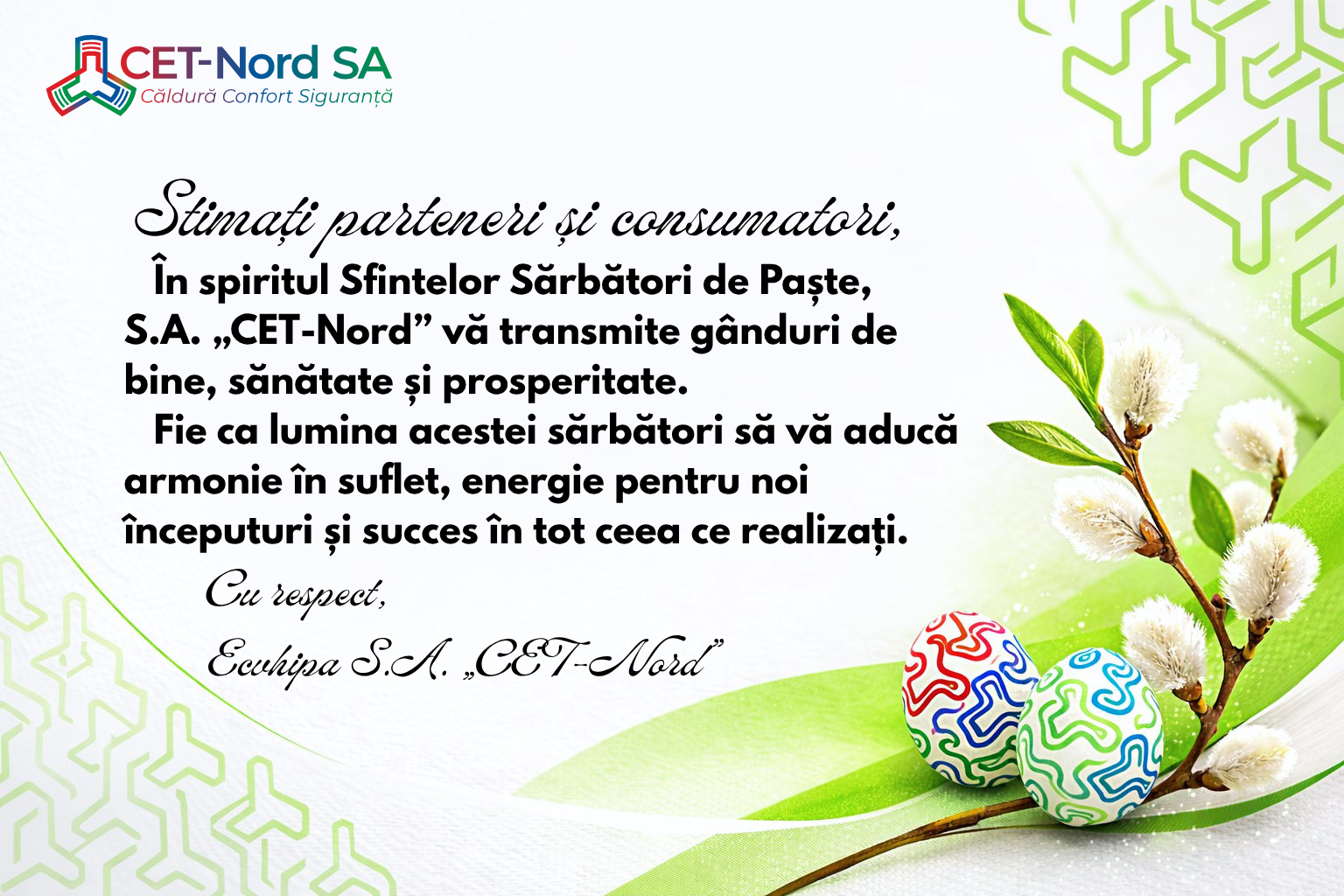 S.A. „CET-Nord” vă dorește sărbători pascale senine și binecuvântate alături de cei dragi! Publicat: 10 Aprilie 2026