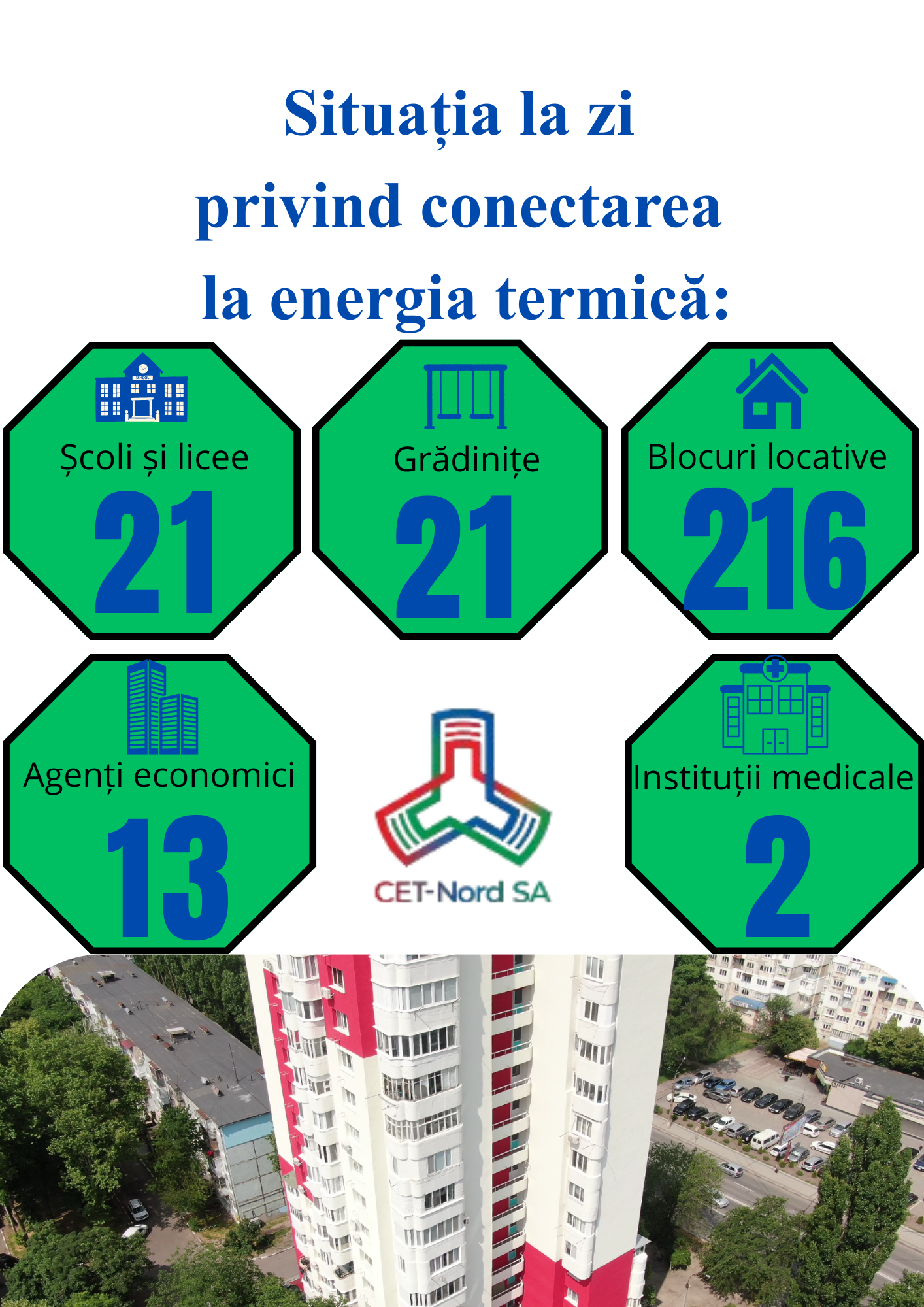 Conform situației din 13 octombrie curent, sunt conectate la sistemul centralizat de alimentare cu energie termică 273 edificii, dintre care: